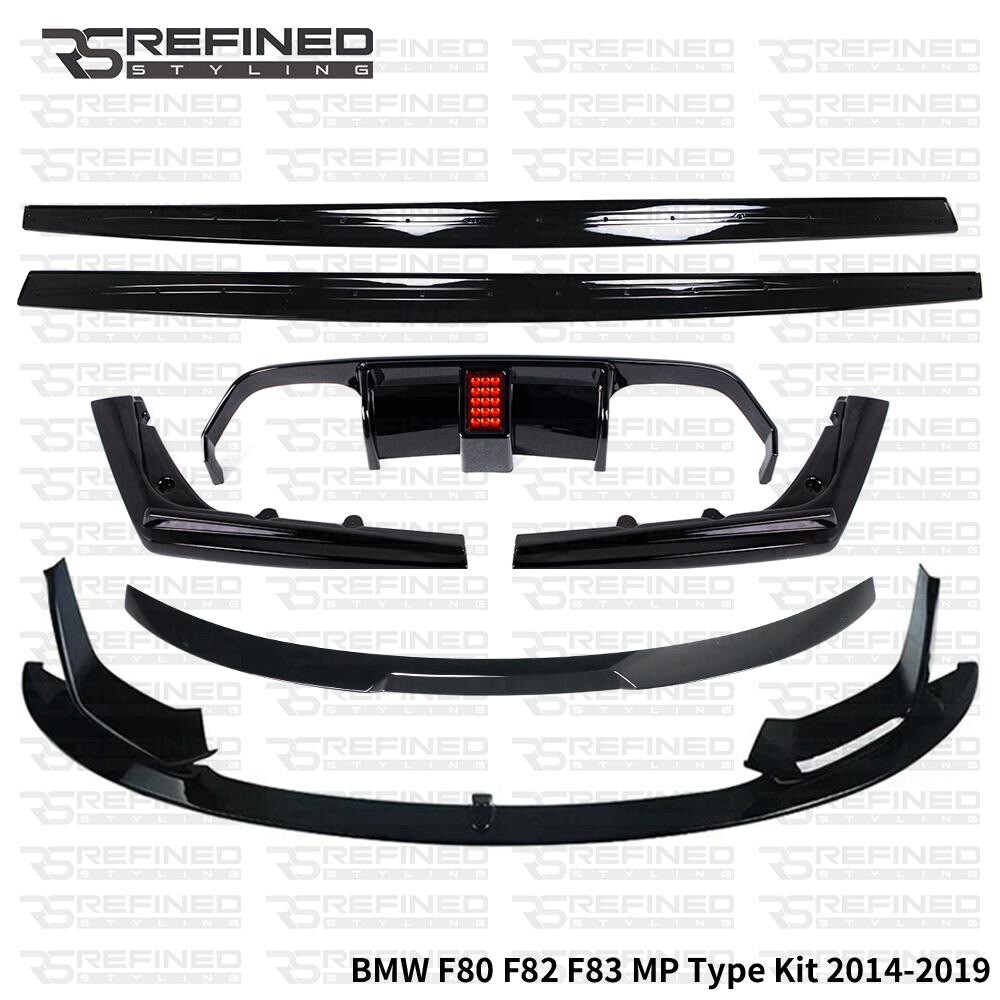BMW M3 M4 F80 F82 F83 FRONT SPLITTER SPOILER GLOSS BLACK KIT LED DIFFUSER SIDE M