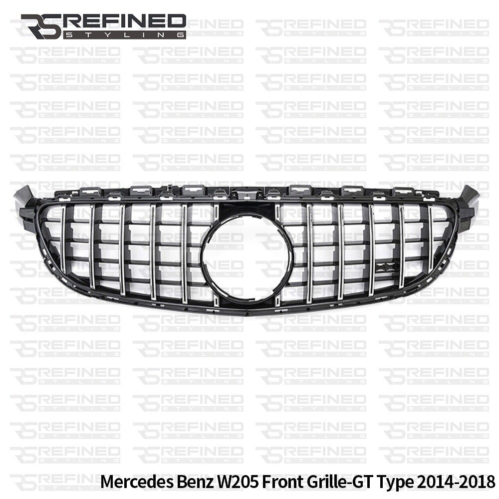 FOR MERCEDES C CLASS AMG W205 C205 GLOSS BLACK FRONT GRILLE GT R STYLE 2014-2018
