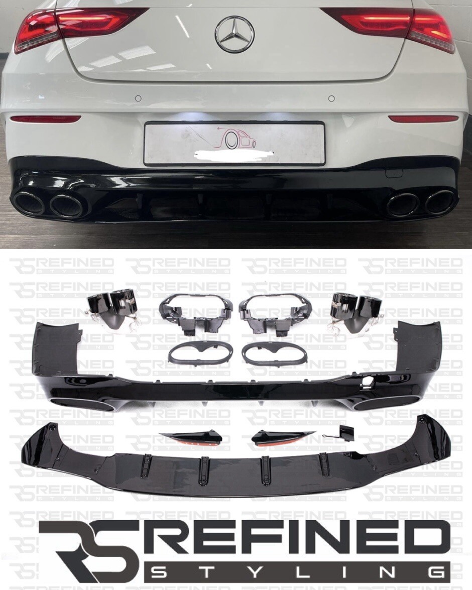 MERCEDES CLA CLASS W118 X118 CLA45 STYLE REAR DIFFUSER + TAILPIPES GLOSS BLACK